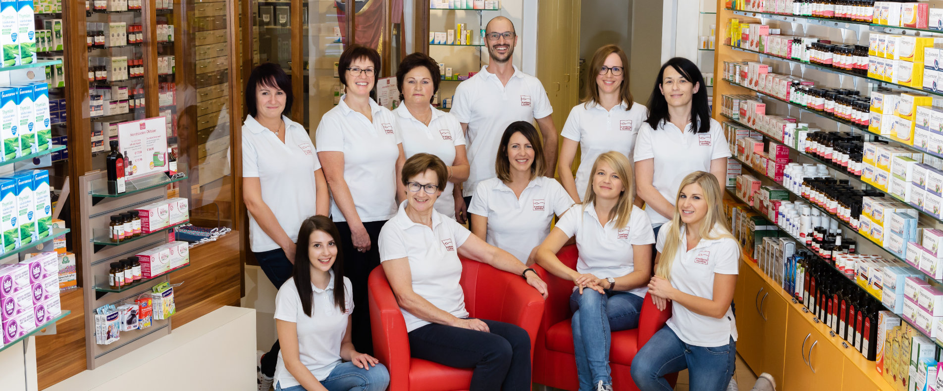 Unser Team ist bunt zusammengewürfelt aus sehr erfahrenen, langjährigen Mitarbeiterinnen, die in der Beratung eine hohe Kompetenz aufweisen und jungen Kolleginnen, die mit neuen Ideen und Initiativen frischen Wind in unsere Apotheke bringen. Da wir viel Wert auf Weiterbildung legen, hat jede/r Mitarbeiter/in Themenschwerpunkte entwickelt und ein profundes Wissen dazu aufgebaut.